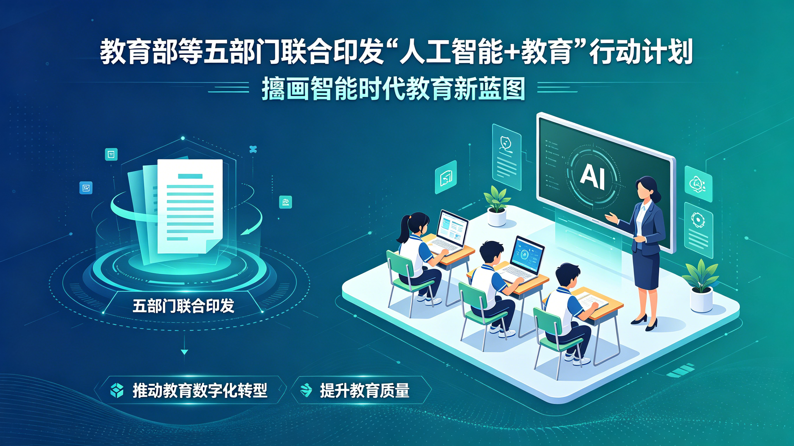 从政策出台到场景落地,从全阶段覆盖到师资先行,从区域试点到全球视野,《“人工智能+教育”行动计划》的发布,不仅为智能时代的教育变革描绘了清晰蓝图,更标志着中国教育正以前所未有的决心拥抱人工智能,致力于培养胜任智能时代的高素质人才,为加快建设教育强国注入澎湃动力。